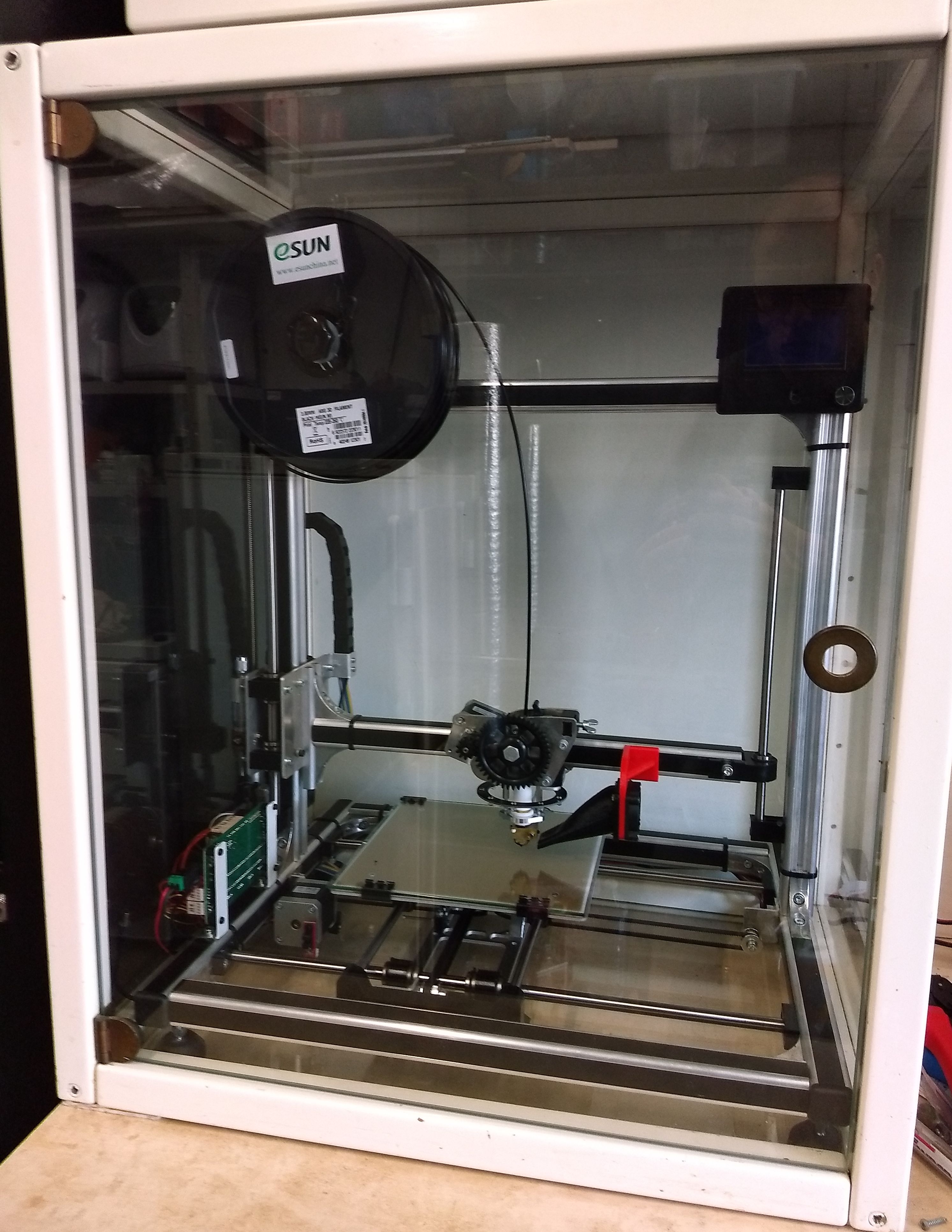 Then I wanted to put the printer in a nice cabinet, so it would not suffer from cold air while printing and dust while not printing. On Marktplaats I found a second hand glass cabinet that really fits the printer like a glove. And it was just two streets away!